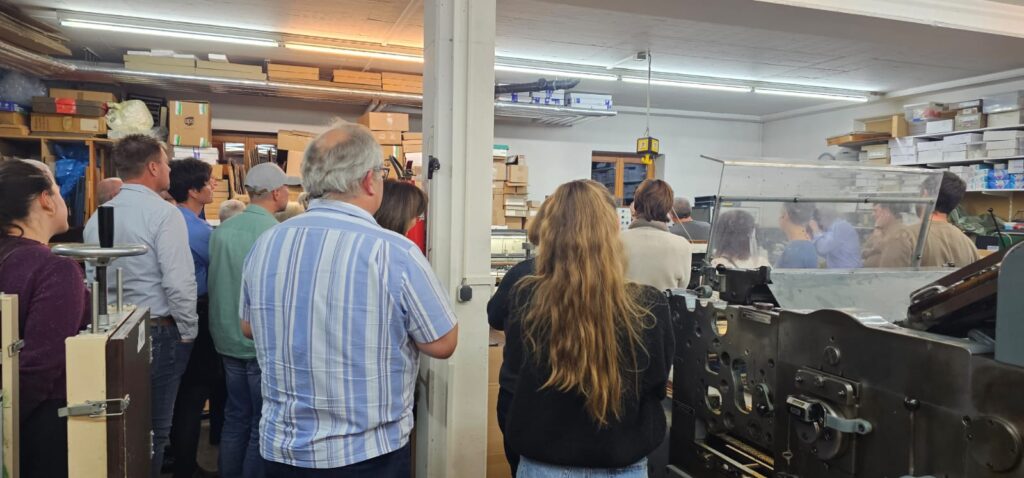 Am 24. Oktober lud der Werbering Isen e.V. zum „Isen trifft sich“-Abend in die Druckerei Nußrainer ein. Rund 20 bis 30 Gäste nutzten die Gelegenheit, einen Blick hinter die Kulissen der traditionsreichen Isener Druckerei zu werfen – und zugleich 50 Jahre Isener Marktbote sowie das 101-jährige Bestehen der Druckerei Nußrainer zu feiern.